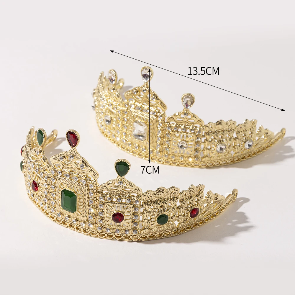 Metal color: Gold-color - LUIZADA European Princess Queen Round Headdress Moroccan Bride Crystal Crown King Bride Headdress Wedding Hair Accessories