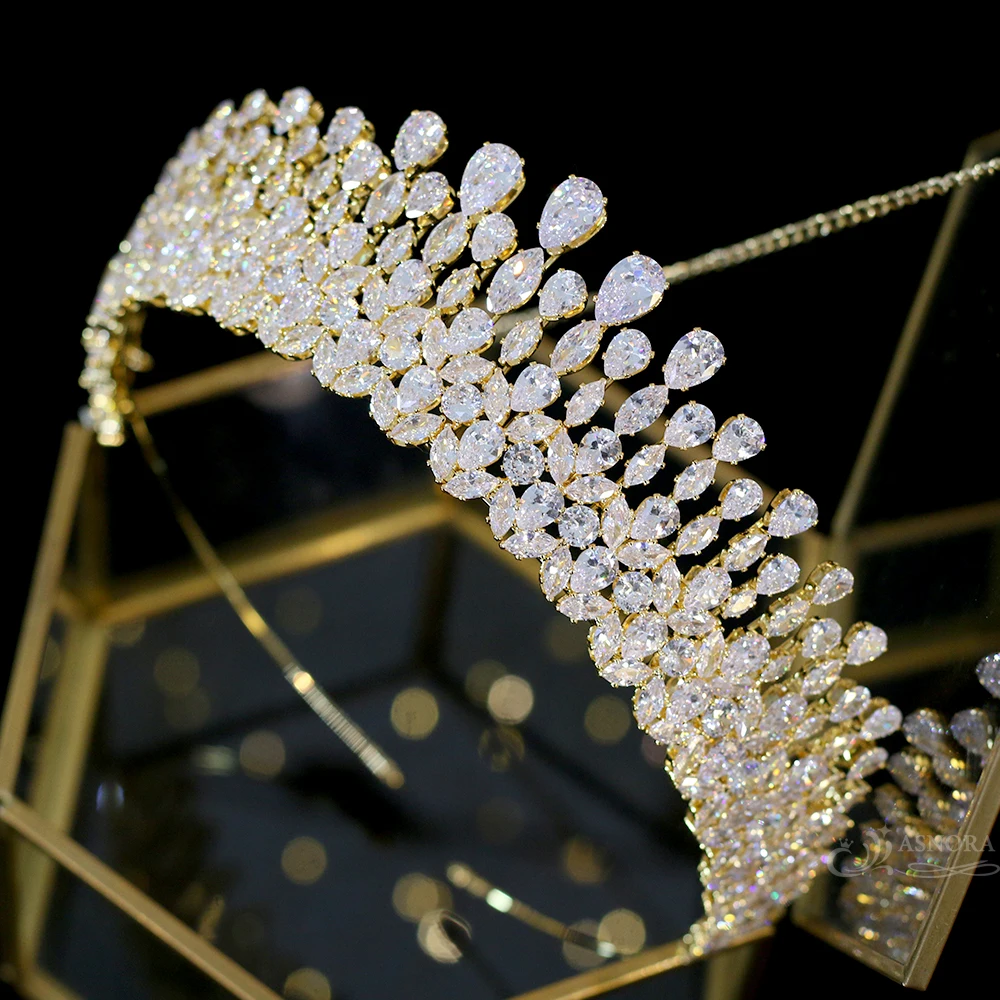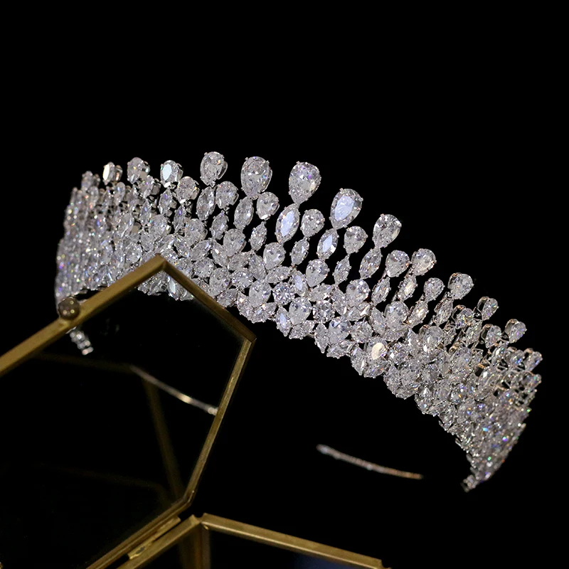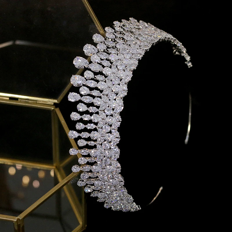 Metal color: Gold-color - New Bride Tiara Crystal Headdress Wedding Hair Accessories Full Zircon Crowns Headband Wedding Jewelry Crowns For Women
