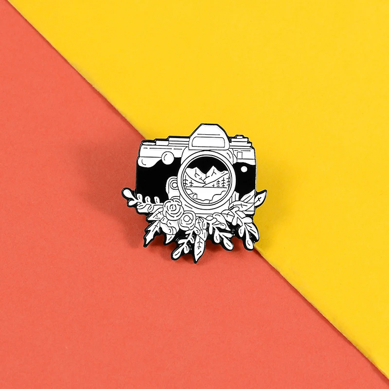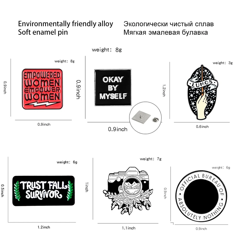 Metal color: Gold-color - Trust fall survivor black and white camera flower Lightning Punk Pins Brooch Lapel Pin Star Magic Wand hand gift for friends