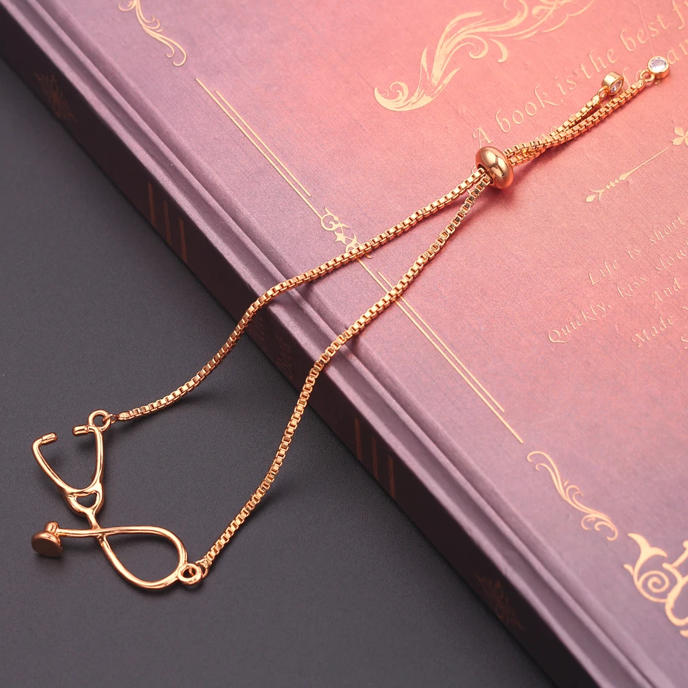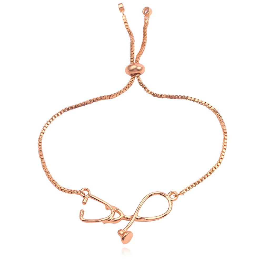 Metal Color: Hot Stamping, Length: 24cm - Medical Stethoscope Bracelet Adjustable Chain Jewelry Gift For Doctor Medical Friends Charm Women Men Bracelets
