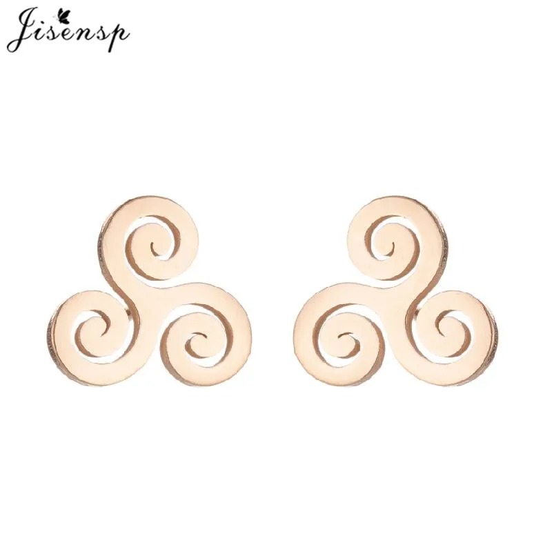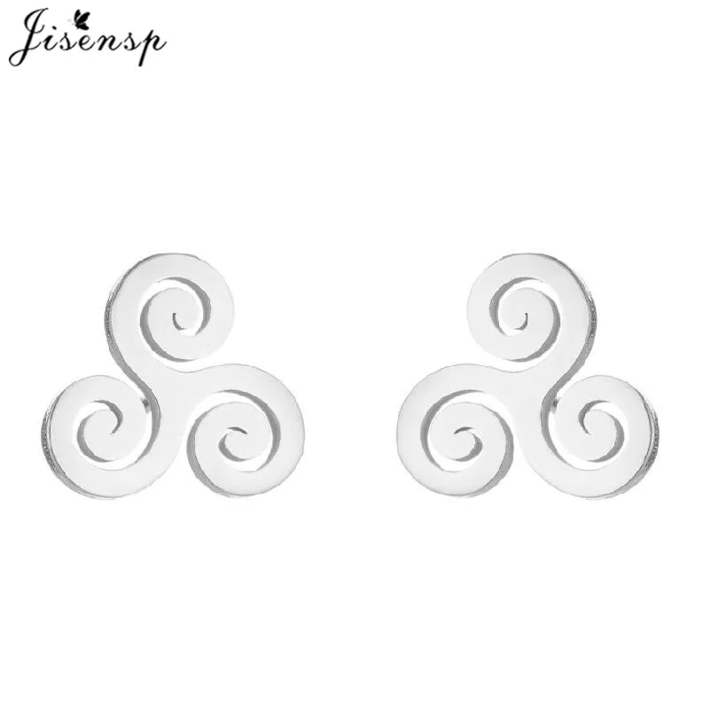 Metal Color: Imitation Rhodium Plated, Main Stone Color: Red - Cartoon The Movie Teen Wolf Triskele Triskelion Inspired Earrings Punk Stainless Steel Jewelry Triple Spiral Ear Studs Women Men