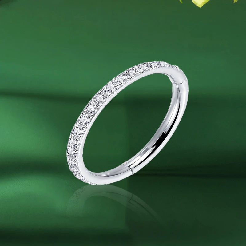 Metal color: Light Yellow Color, Main Stone Color: WHITE - G23 Titanium Piercing Hinged Segment Hoops CZ Stone Nose Rings Ear Cartilage Tragus Helix Earrings Piercing Body Jewelry