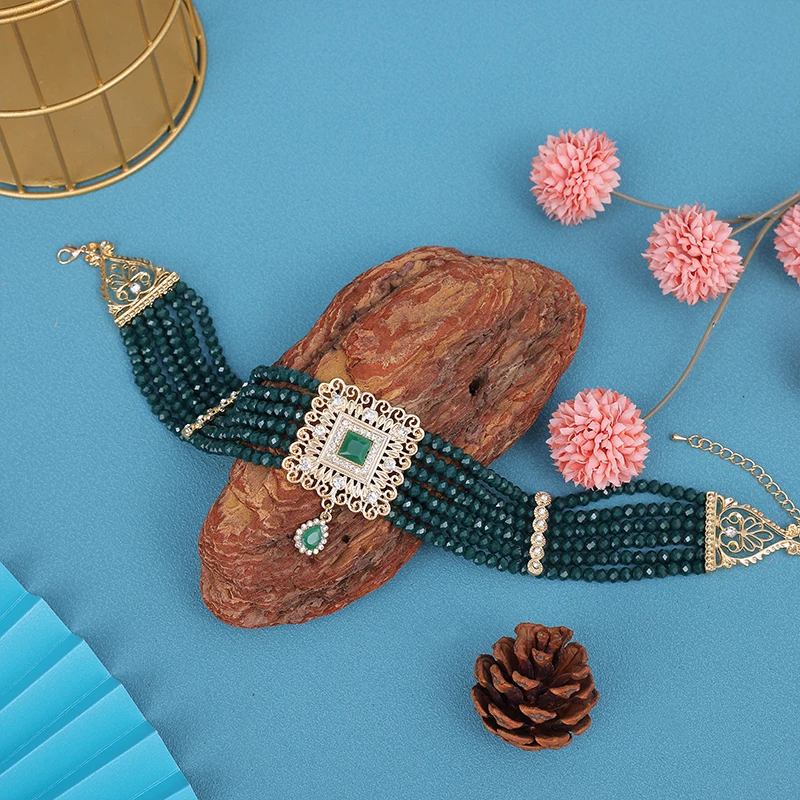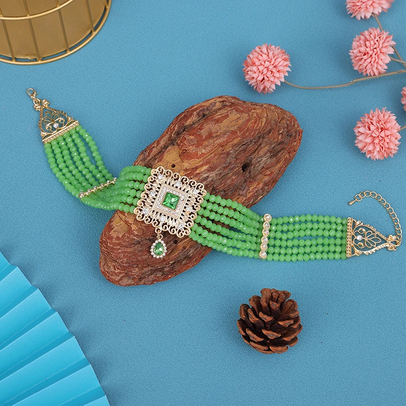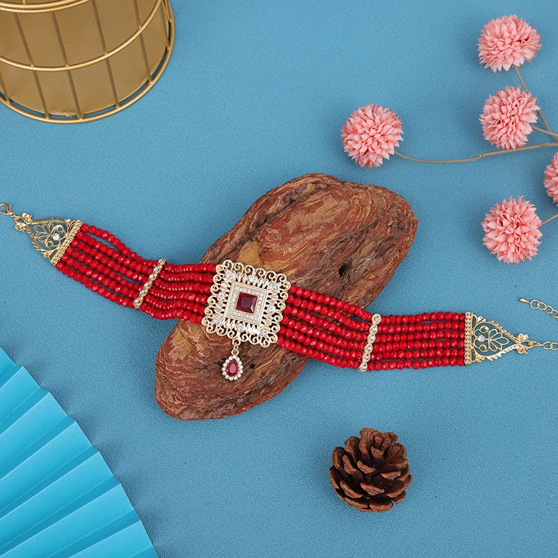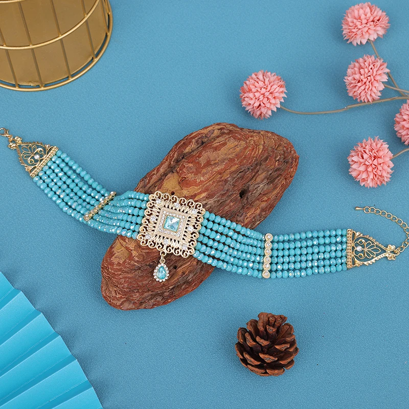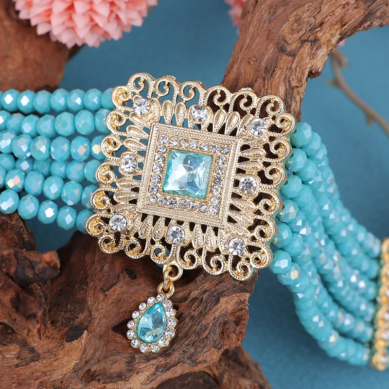 Metal color: Light Yellow Gold Color - Hand Beaded Necklaces Water Drop Pendants Beaded Necklaces For Arab Brides