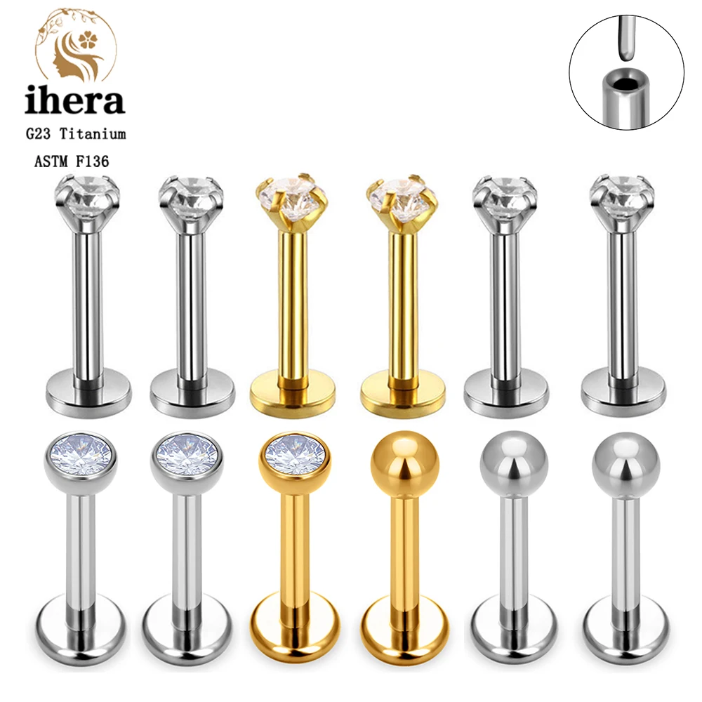 Metal color: Light Yellow Gold Color, Main Stone Color: black - 10PCS G23 Titanium Lip Ring Labret Piercing Stud Earring CZ 16/18/20G Push Pin Ear Tragus Cartilage Helix Conch Pierc? Jewelry