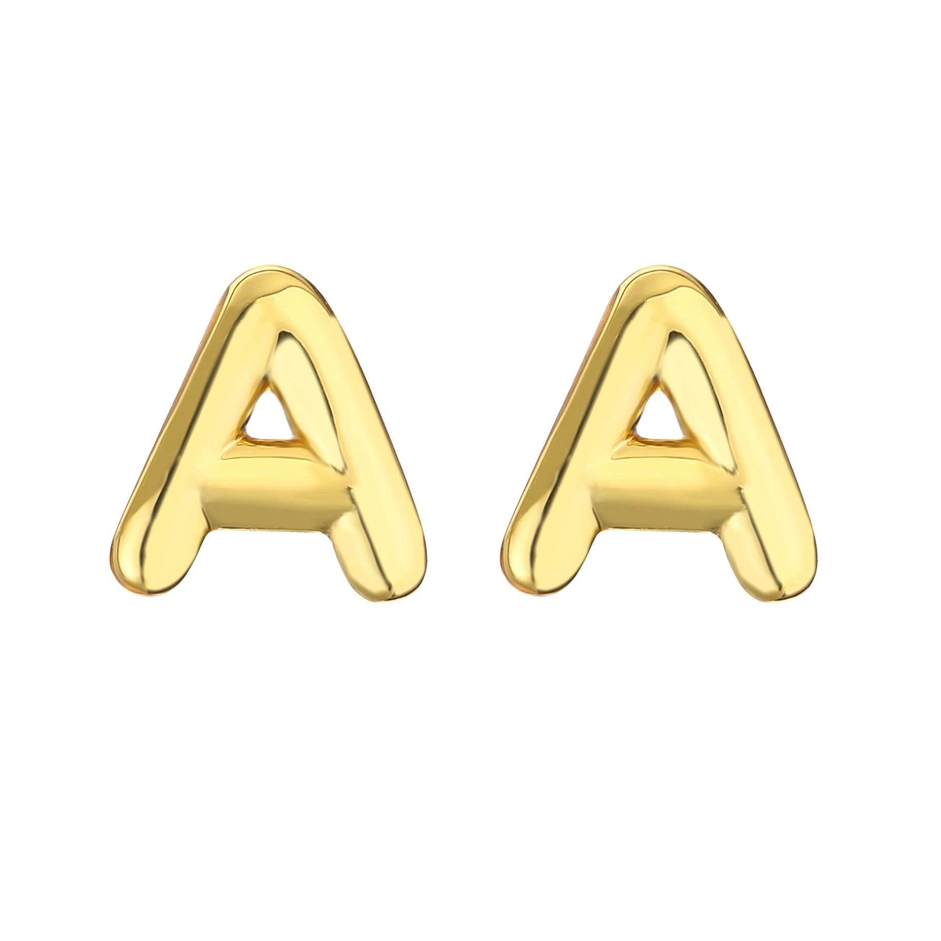 Metal Color: Light Yellow Gold Color, Ships From: CHINA, Main Stone Color: ROSE RED - HECHENG,Initial Letter Earring For Women Men A-Z 26 Letters Stud Earrings,Brass 18K Plated ear stud Jewelry