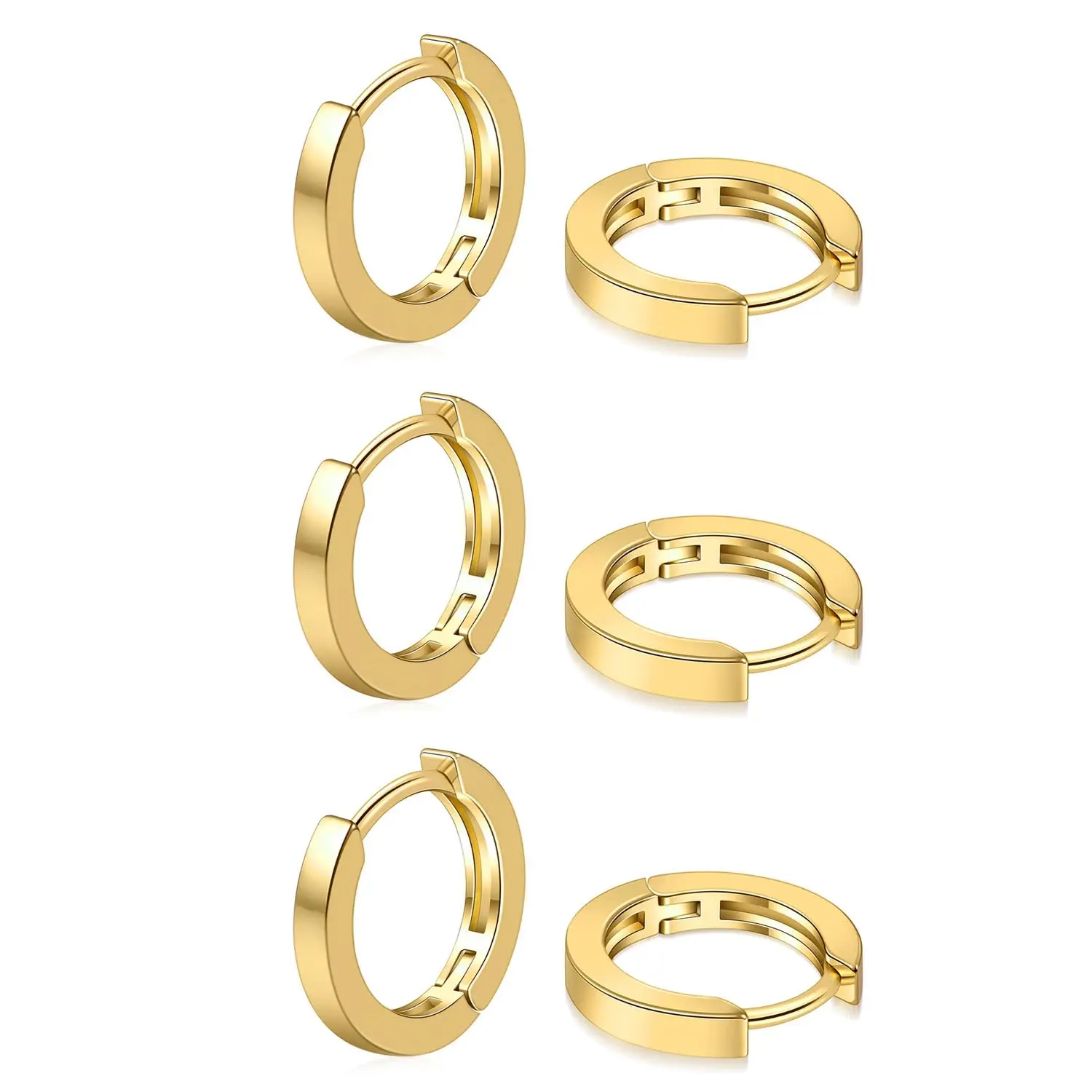Metal Color: Light Yellow Gold Color - Vonmoos New Women 3 Pairs Small Earrings Lady Classic 14K Gold Hoop Fashion Tiny Huggie Hoop Earrings Set Hypoallergenic Earring