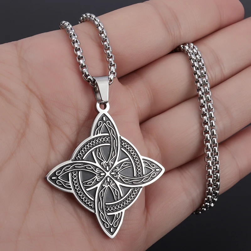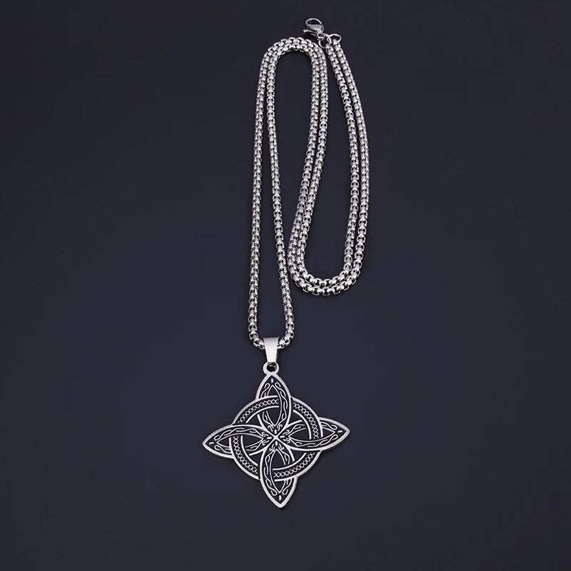 Metal Color: MULTI - Stainless Steel Silver Color Pattern Witch Knot Pendant Necklace Celtic Knot Lucky Jewelry Gift for Friends Family