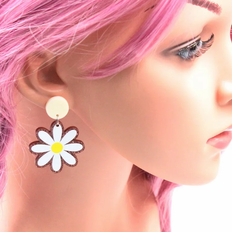 Metal Color: Orange, Ships From: CN - 35mm Acrylic Daisy Dangle Earrings Cute Earrings Glitter Jewelry Acrylic Earrings