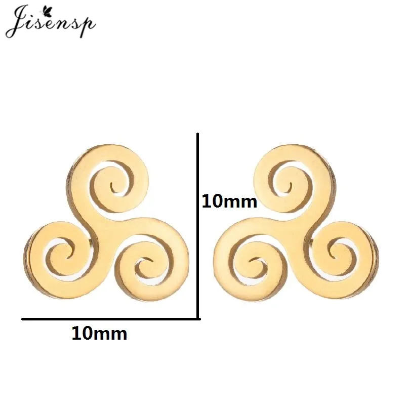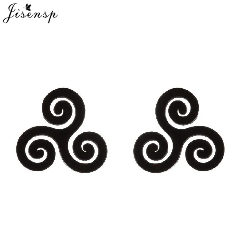 Metal Color: Pink, Main Stone Color: Red - Cartoon The Movie Teen Wolf Triskele Triskelion Inspired Earrings Punk Stainless Steel Jewelry Triple Spiral Ear Studs Women Men