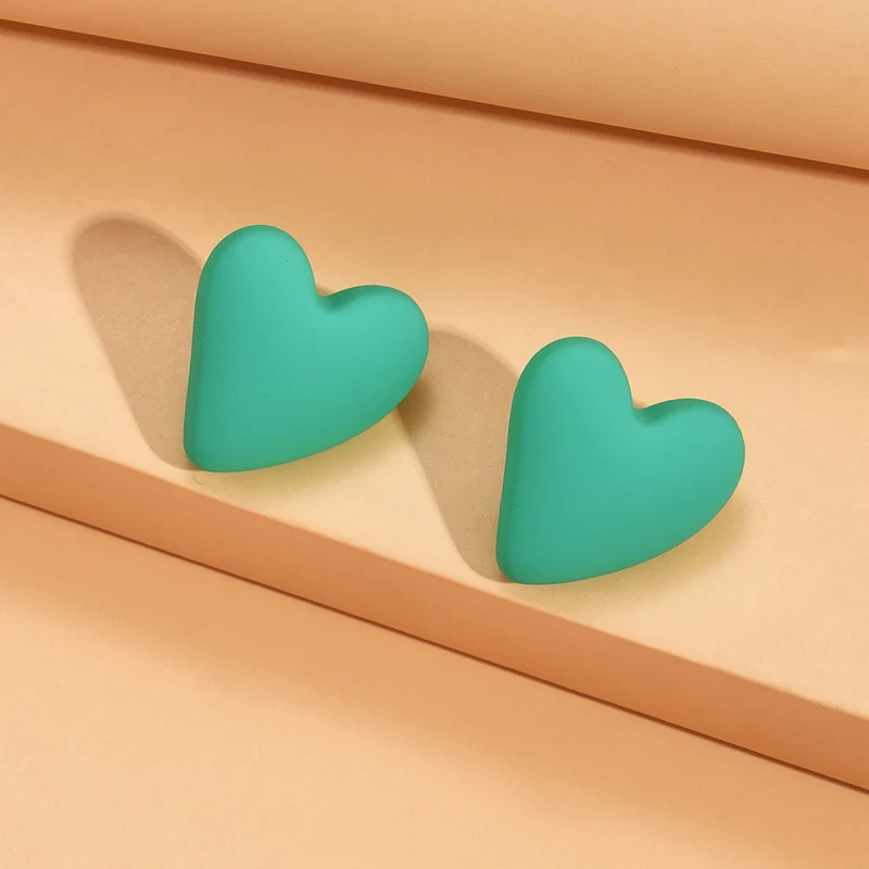 Metal Color: Pure Gold Color - Koean Fashion Candy Color Acrylic Love Eardrop Simple Design Geometric Heart Party Jewelry Earrings Ear Studs All-match EarStuds