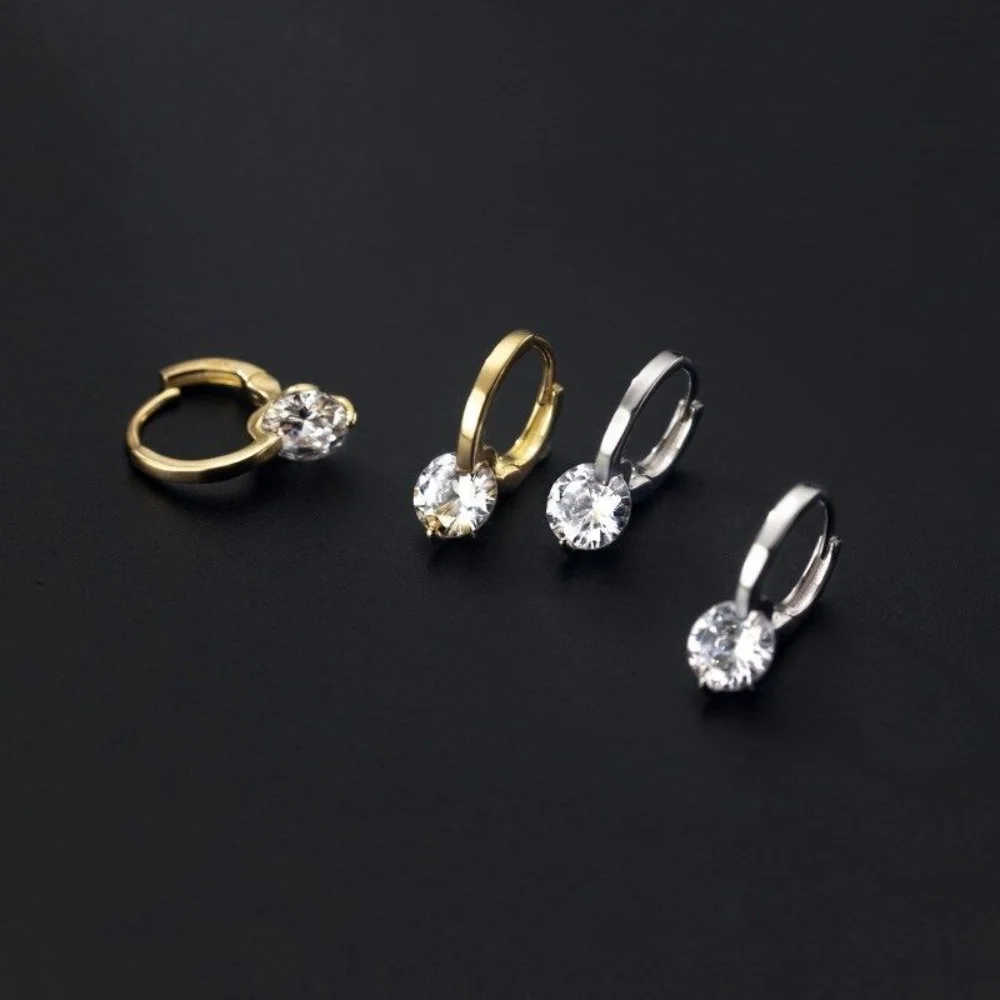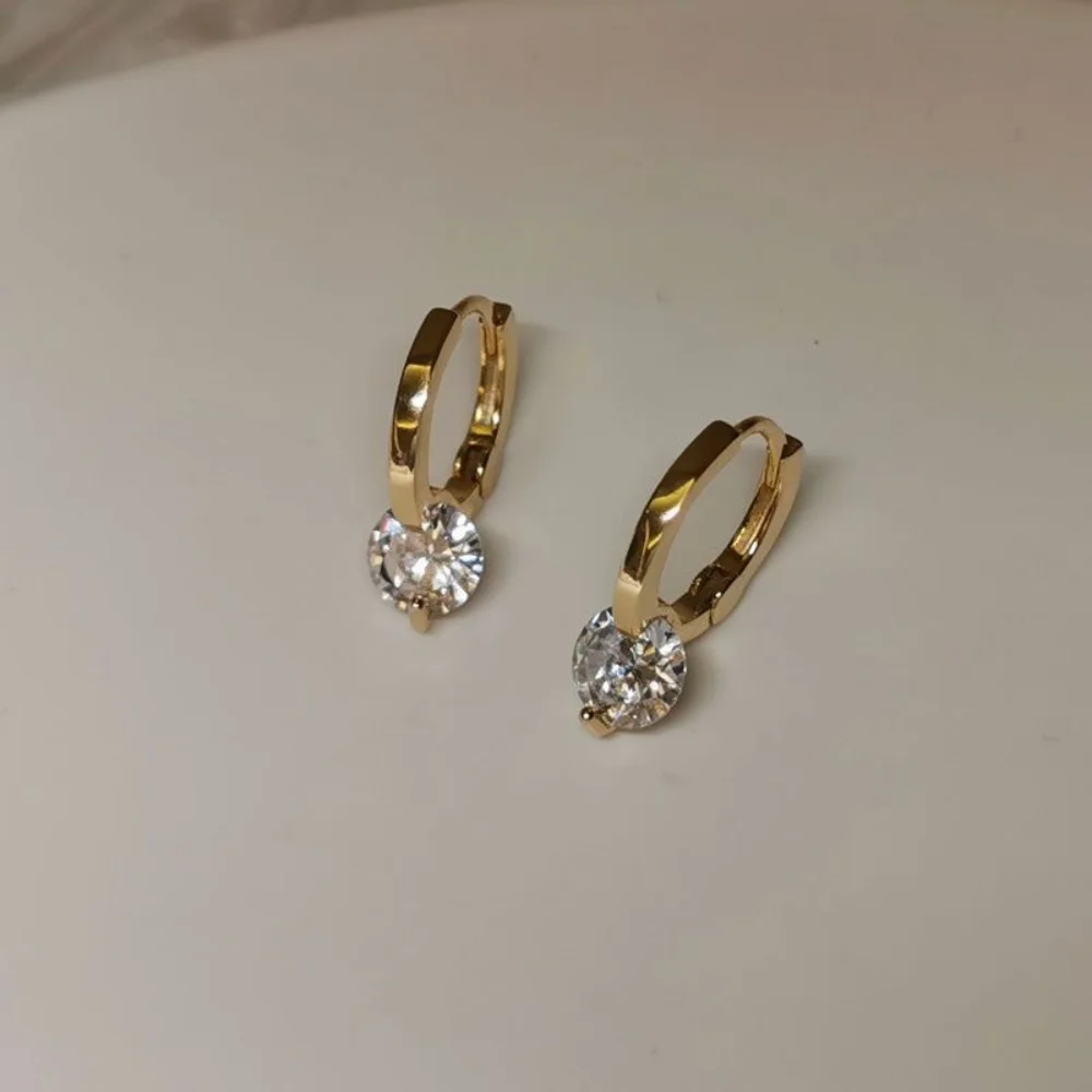 Metal Color: Red Wine - 2024 New Fashion Gold Color Round Zircon Simple Drop Dangle Earrings for Women Charm Korean Hoop Jewelry Wedding Birthday Gift
