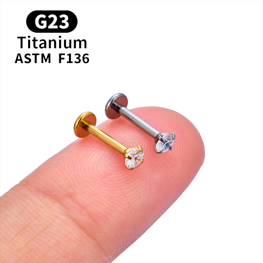 Metal color: Rhodium Plated, Ships From: CHINA, Main Stone Color: VIOLET - 10PCS ASTM F136 G23 Titanium Piercing Labret Lip Ring Stud Earring CZ Ear Tragus Cartilage Helix Daith Pierc Jewelry 16/18/20g