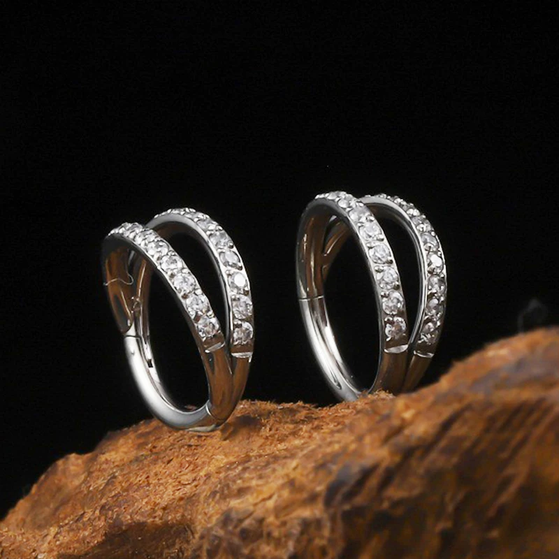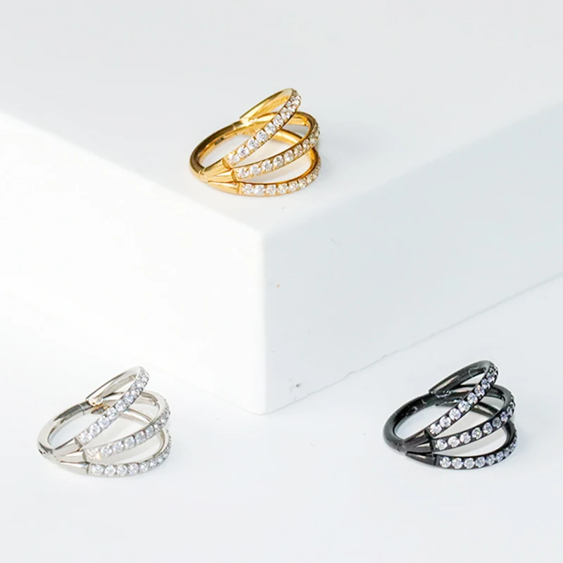 Metal color: ROSE GOLD COLOR, Main Stone Color: WHITE - G23 Titanium Piercing Hinged Segment Hoops CZ Stone Nose Rings Ear Cartilage Tragus Helix Earrings Piercing Body Jewelry