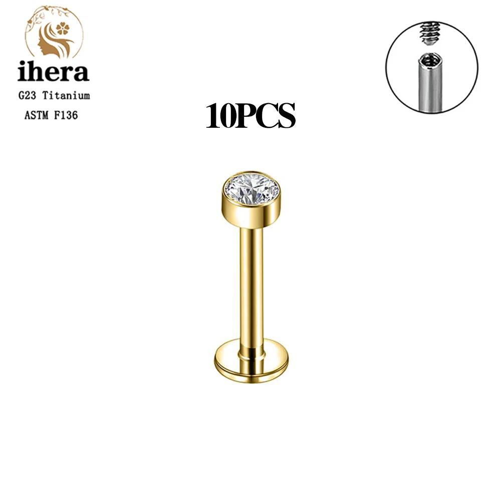 Metal color: ROSE GOLD COLOR, Ships From: CHINA, Main Stone Color: Yellow - 10PCS G23 Titanium Labret Piercing Lip Ring 16G F136 Internal Thread Nose Stud Earring Tragus Helix Cartilage Piercing Jewelry