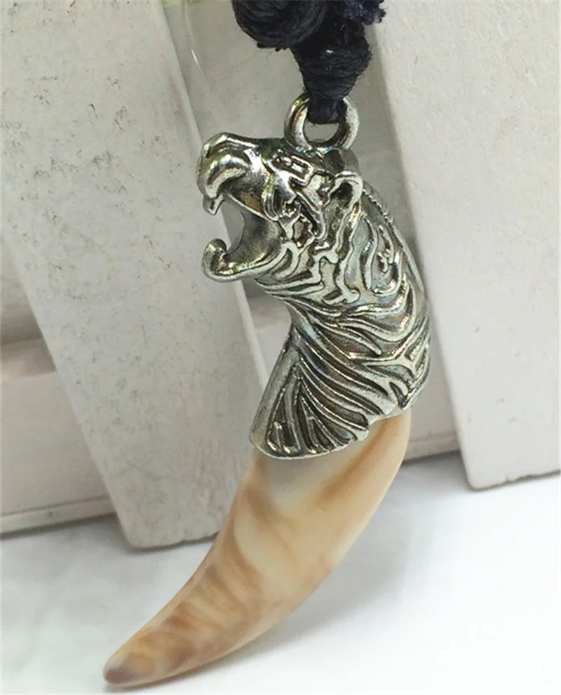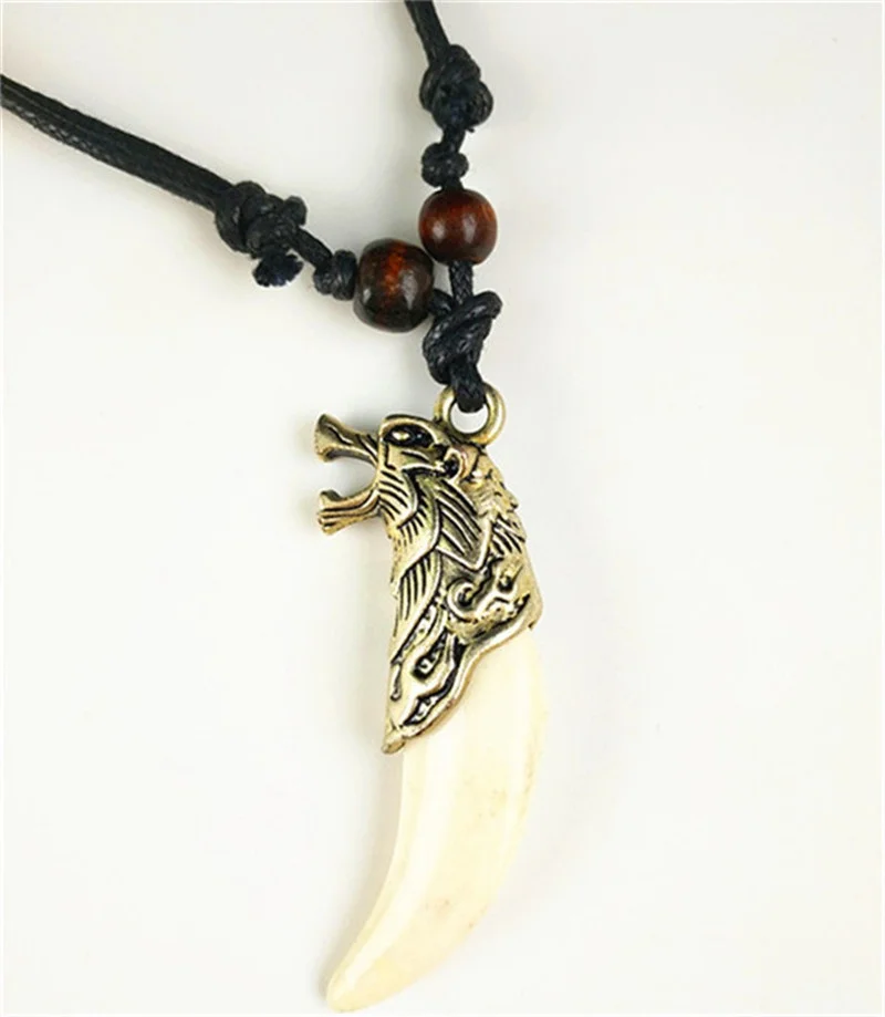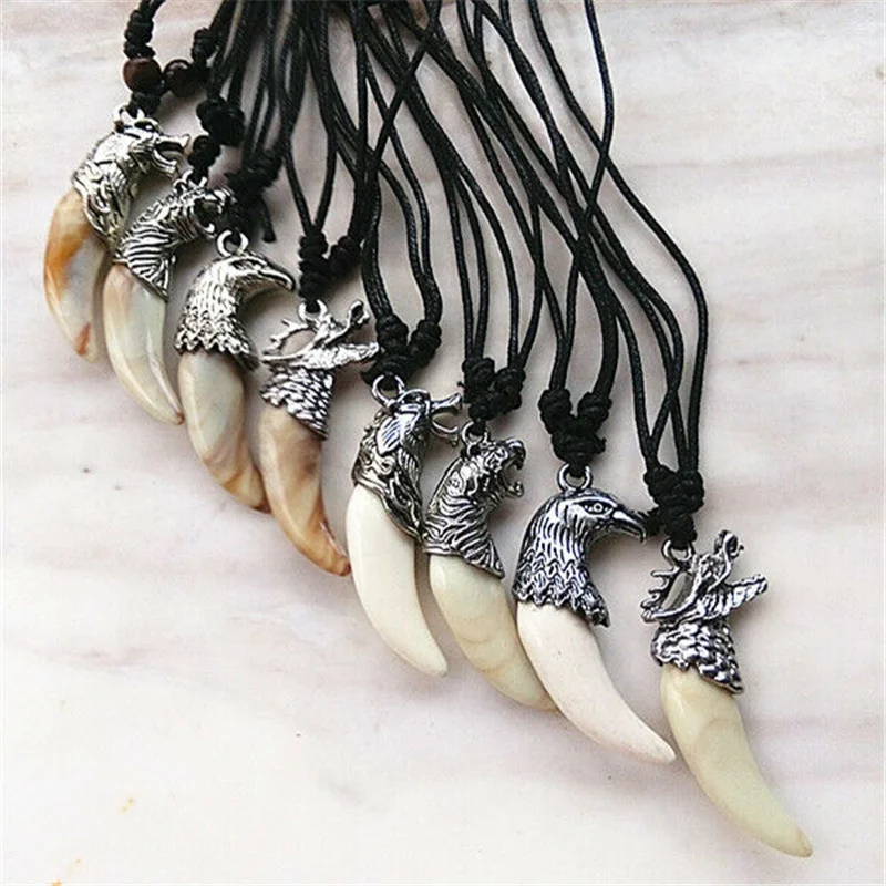 Metal Color: Rust Red, Length: 60cm, Ships From: CHINA - 8 style Punk Alloy Wolf Leopard head Eagle Head Tiger Teeth Pendant Necklace Charms Beads Sweater Chain Rope Women Amulet