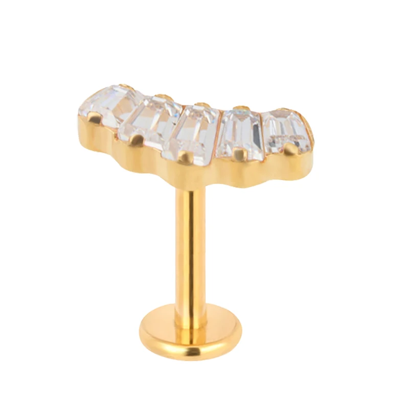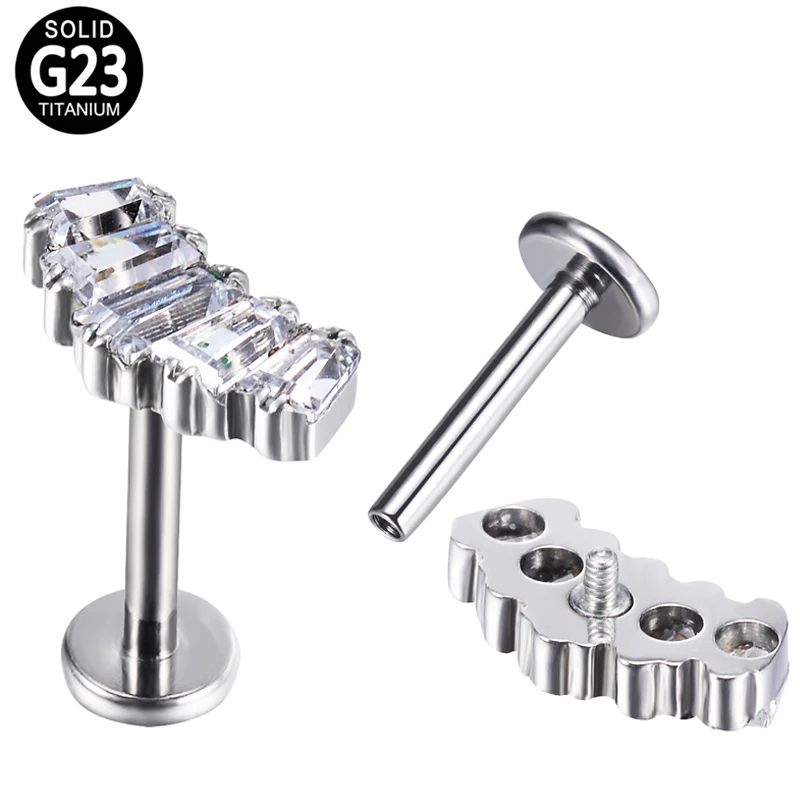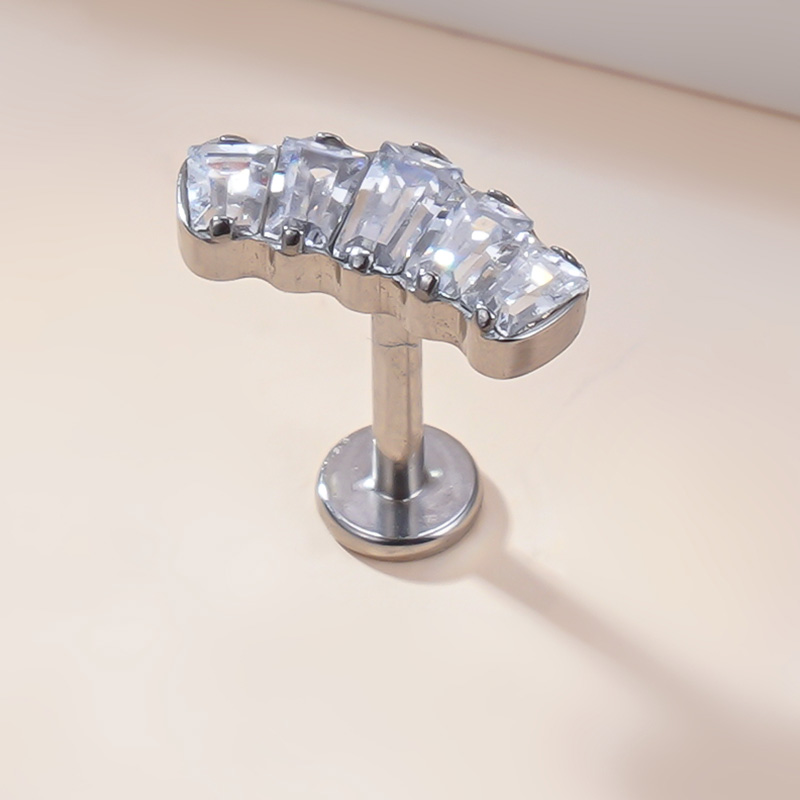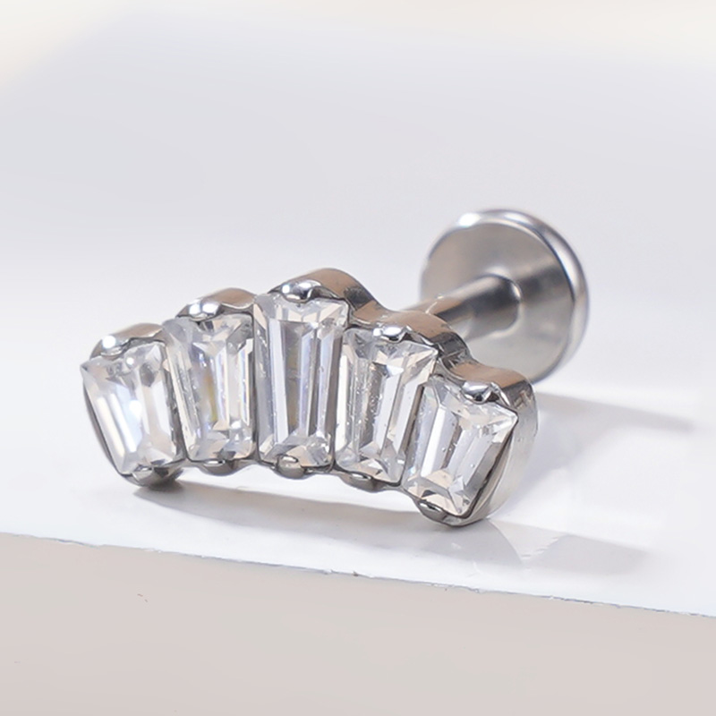 Metal color: Silver Plated, Main Stone Color: WHITE, Ships From: CHINA - G23 Titanium Ear Studs 5 Oblong CZ Blaze Curve Top Threaded Labret PIERC Lip Stud Ear Cartilage Tragus Helix Piercing Jewelry