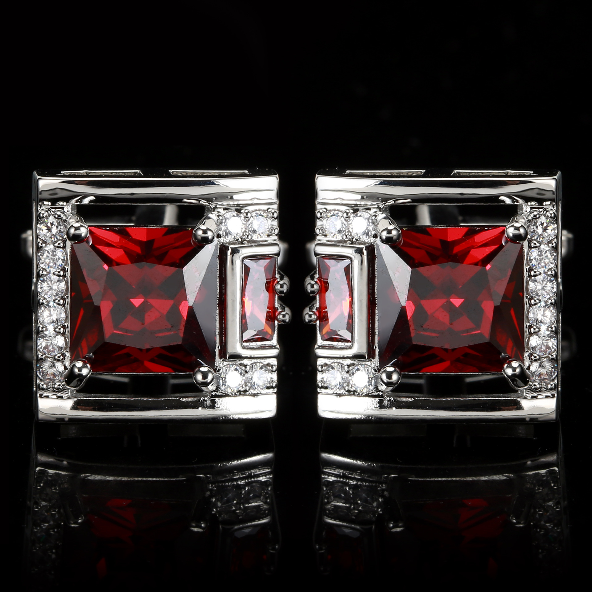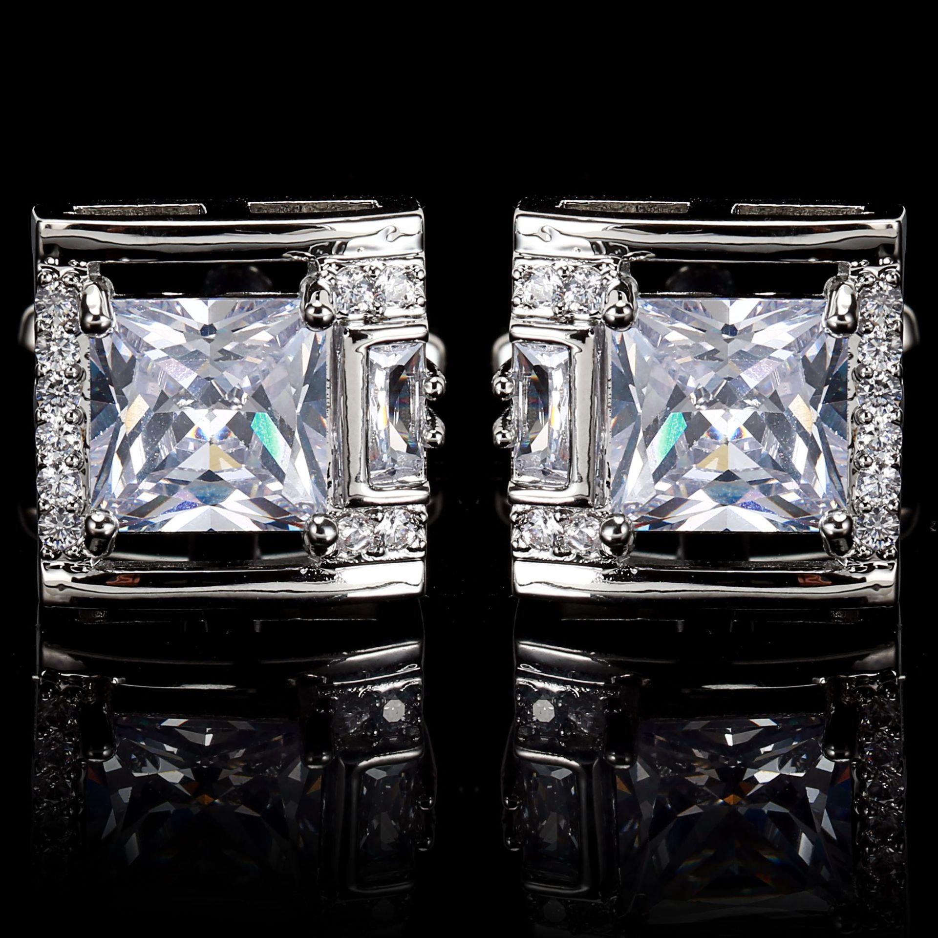 Metal color: SILVER PLATED - Tough Square Zircon Stone Cufflinks for Man Luxury Shirt Suit Cufflinks Black stone Cufflinks Gift Accesories for Man