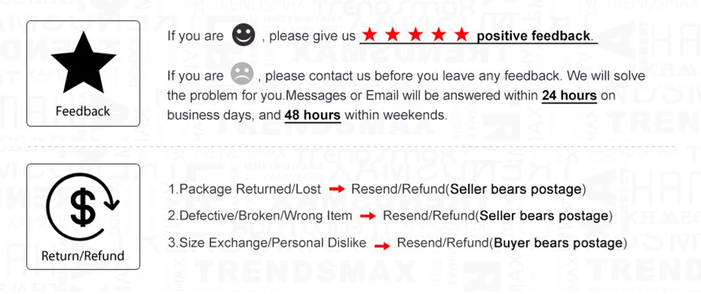 feedback and 5 stars if you are satisfied with our products and service. If you find any problems
