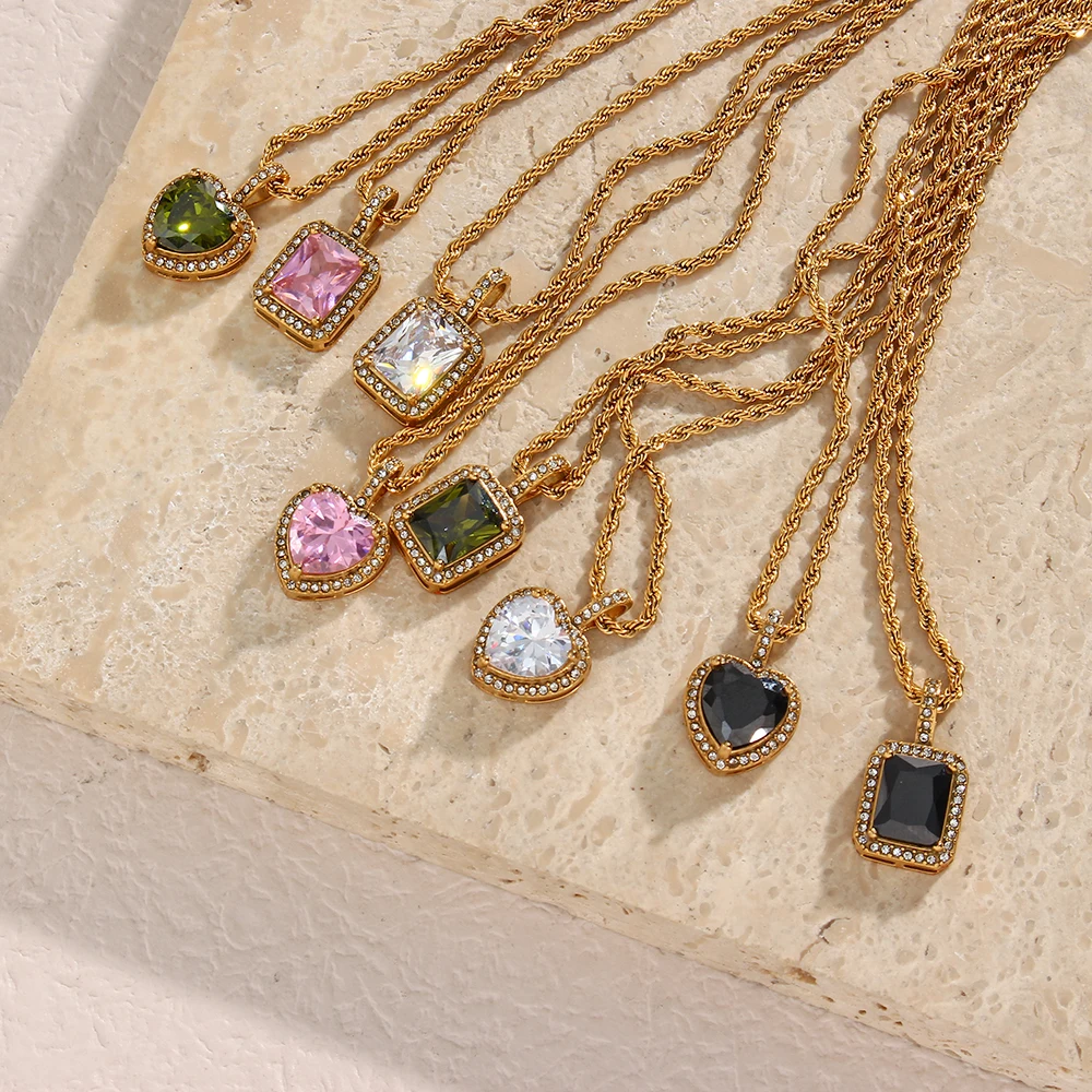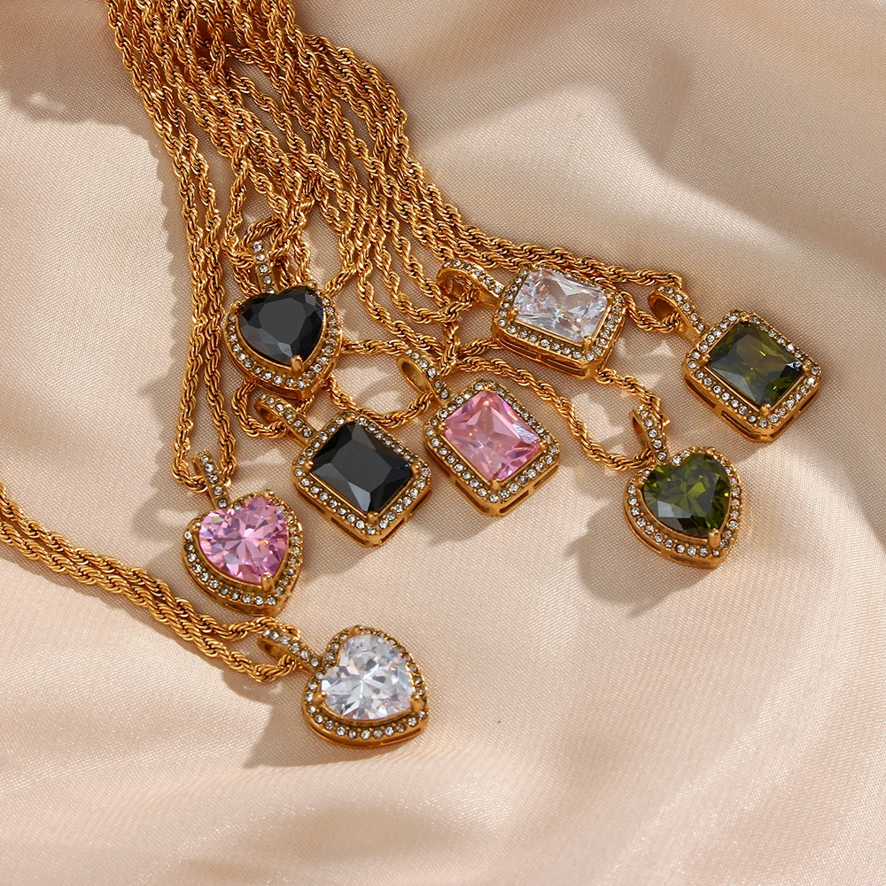 Metal Color: Steel color - 2022 New Stainless Steel PVD Plating Heart Shape AAA Cubic Zircon Stone Pendant Necklace Ladies Party Christmas Jewelry Gift