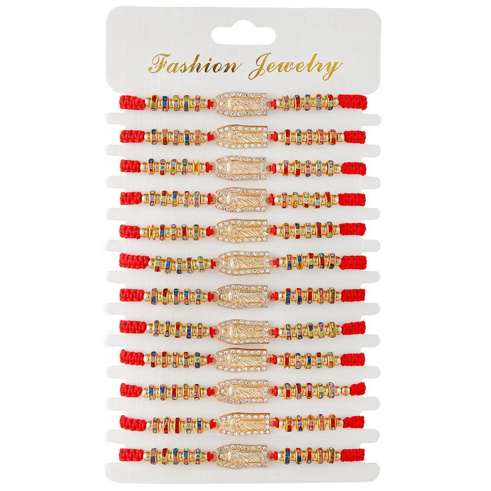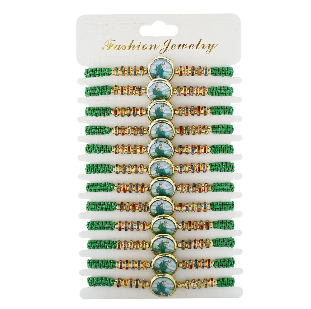 Metal Color: Vermeil - 12 Pieces Mexican Bracelets Saint Jude Bracelet Catholic Green Handmade String Bracelets San Judas Tadeo Rosary Bracelet Gift