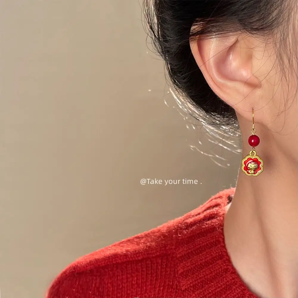 Metal Color: Vermeil - Chinese Style New Year Earrings Heart God of Wealth Snake Year Drop Earring Tassels Ear Decor 2025 Women Earrings Women