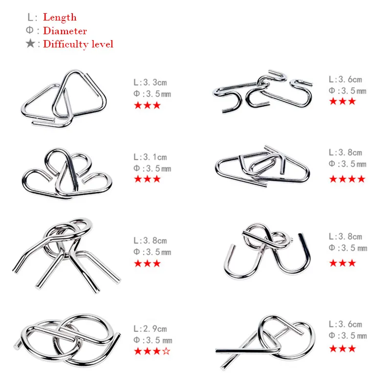 This metal puzzles set consists of 8 classic Metal Puzzles, all of these puzzles are very classic and popular, very ideal for children and