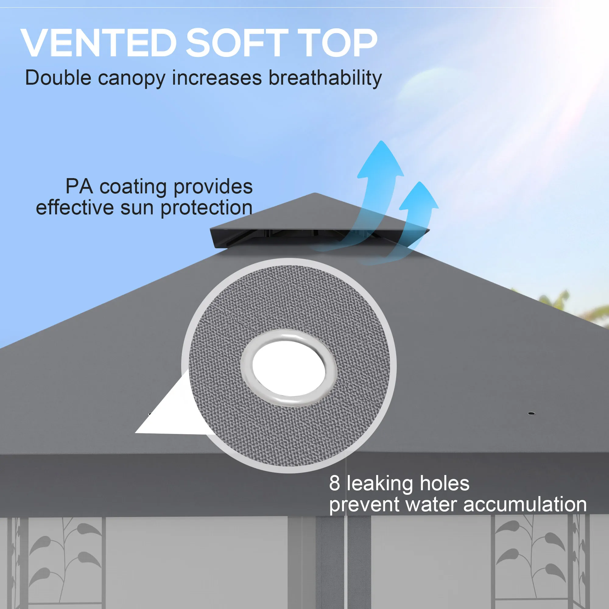 Built with a sturdy frame, this gazebo delivers stability and support for everyday outdoor use. Its structure is made to withstand exposure to the elements while maintaining its shape and performance over time.