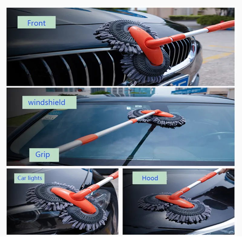This specialized cleaning tool is designed to simplify the car washing process. Its extended reach handle allows users to clean large areas comfortably, while the soft microfiber head gently removes dirt without damaging the paint. The rotating mop head enhances flexibility, allowing it to glide smoothly across curved surfaces such as roofs, windscreens, and side panels.