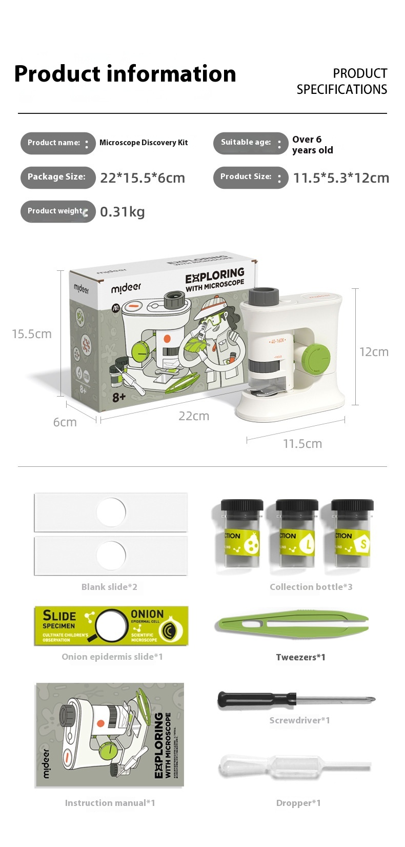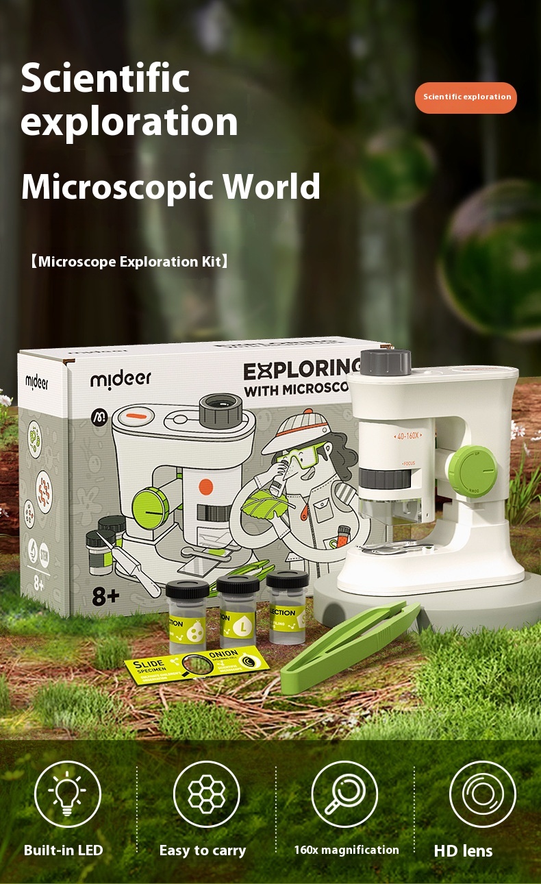 - Imágenes de alta definición: Equipado con una lente HD para ofrecer un aumento claro y detallado, lo que permite a los niños examinar de cerca las muestras y experimentar el mundo microscópico como nunca antes.