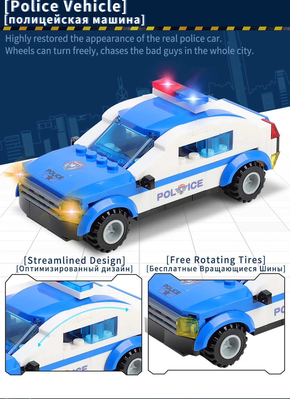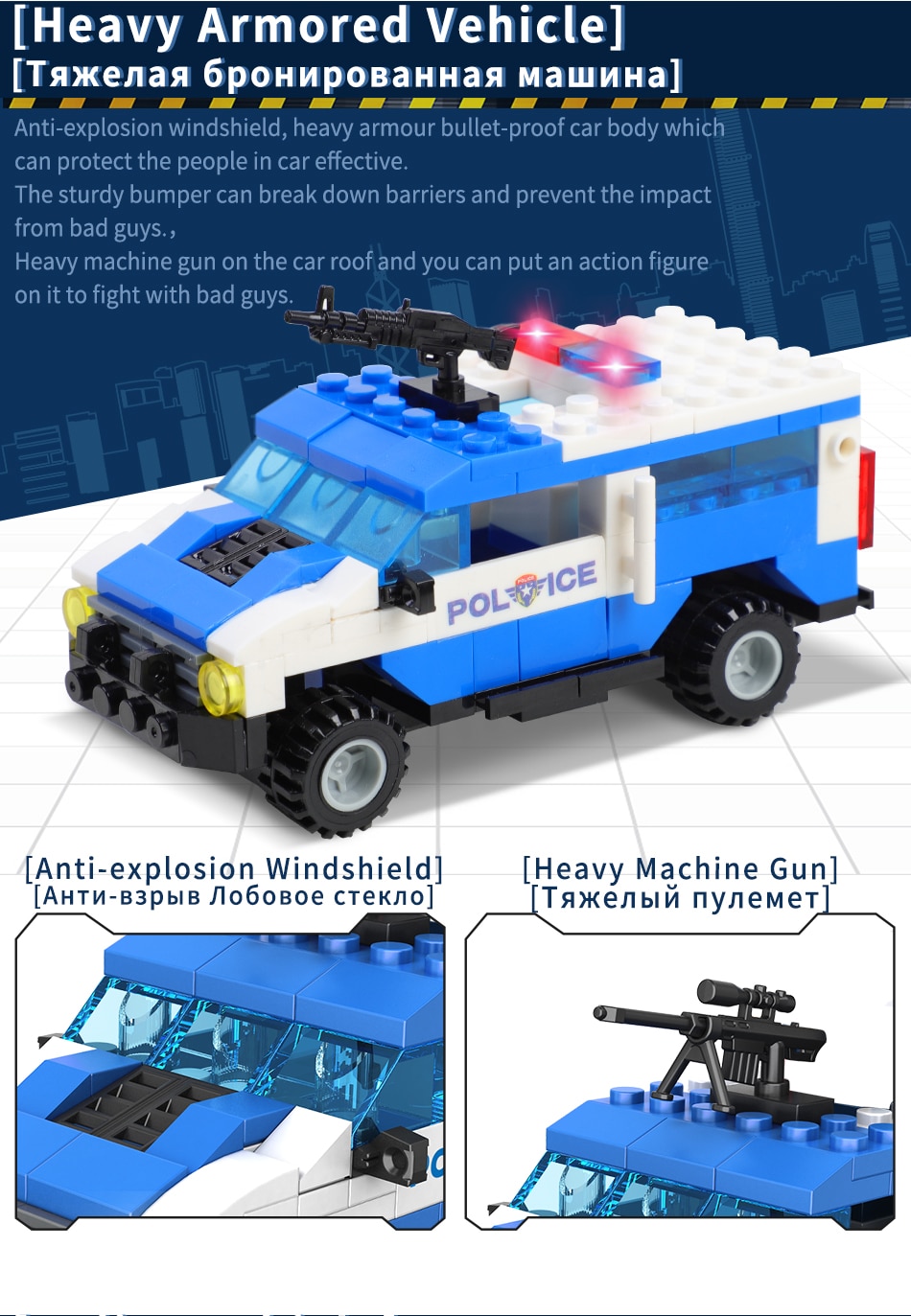 You must follow the instructions to put together 8 small vehicles and assemble them into a large truck.