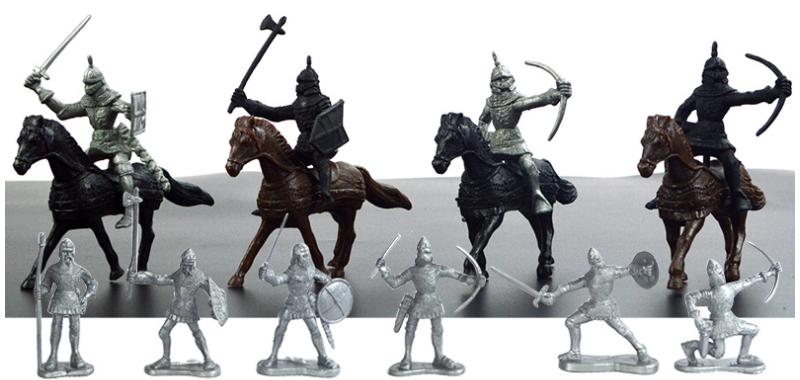 12 soldiers + 8 soldiers and horses + 8 cavalry (mixed black and gray)
