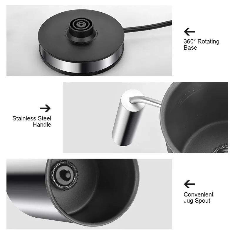 The design often includes a spout for precise pouring, making it easy to create latte art or serve drinks cleanly without spills. The handle is ergonomically designed for comfort and control, even when the appliance is hot.