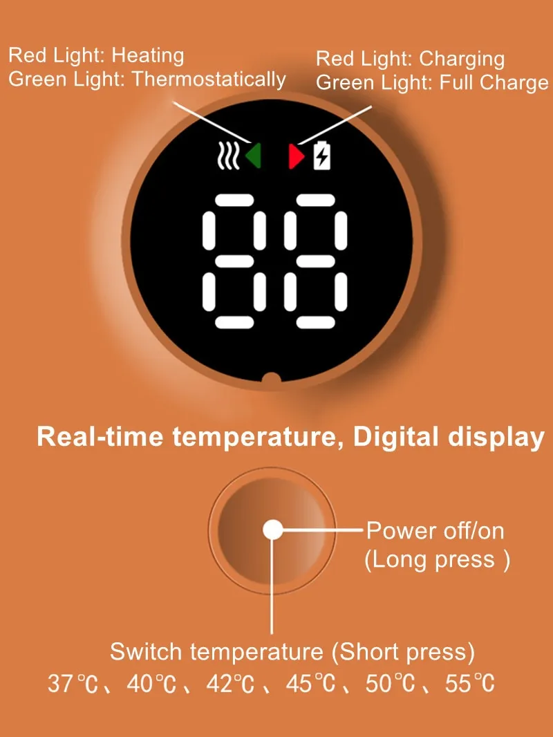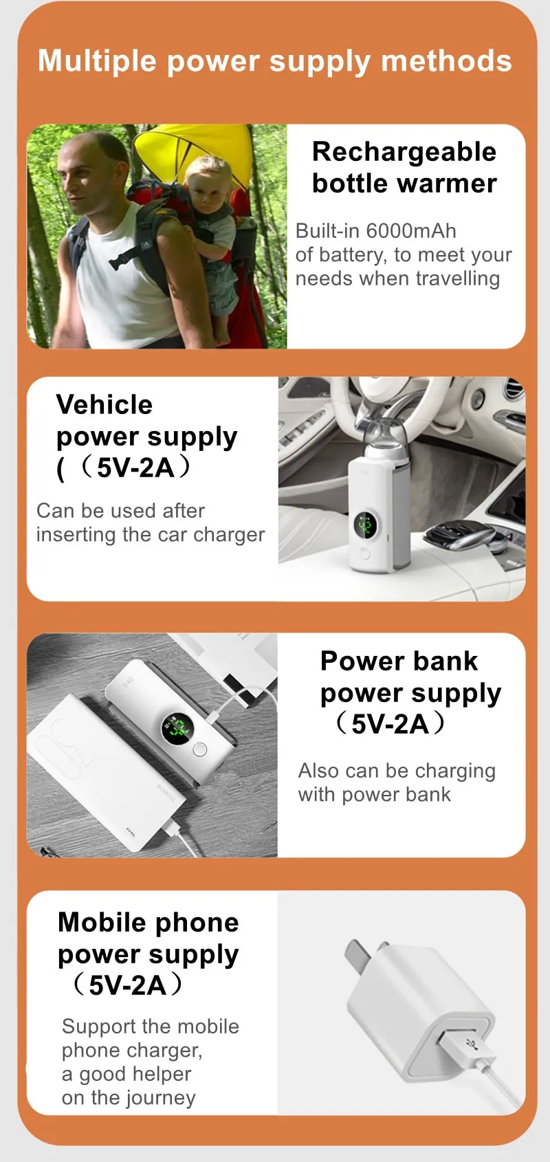 Large battery capacity ensures more stable heat and longer-lasting insulation of the milk heater. Constant temperature light: put the milk bottle into the milk warmer and turn on the power at 42°C. Once the constant temperature light is on, it can be removed for drinking or making milk.