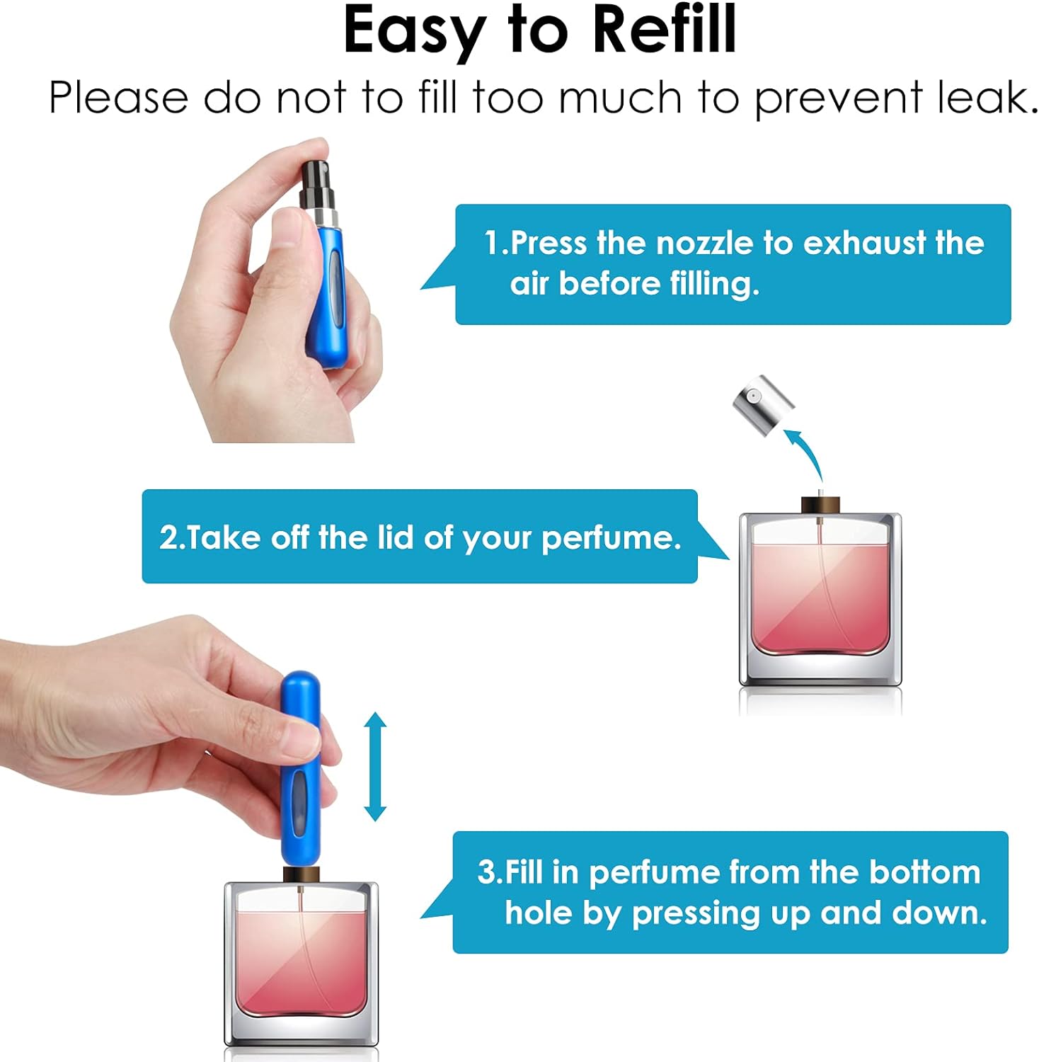 Estos atomizadores de perfume son elegantes, delgados y fáciles de transportar. Pueden contener tu perfume, colonia, aceites esenciales y lociones para después del afeitado favoritos. Una buena opción para llevar cuando viajas, tienes una cita o vas de fiesta.