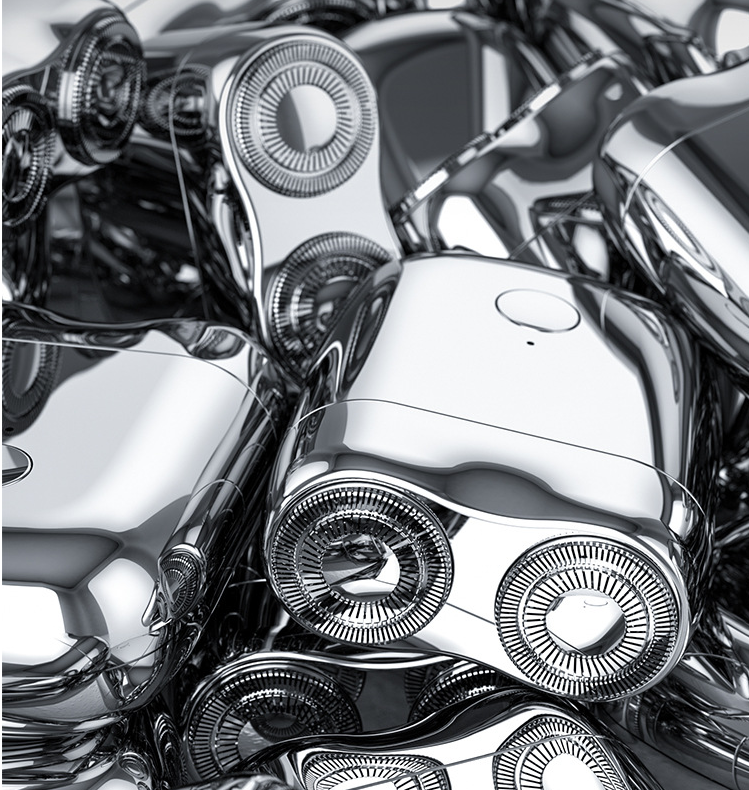 [Red de cuchillas curvadas de doble anillo]: Acero importado de Alemania, red de cuchillas curvadas de doble anillo, con diseño de cabezal de cuchilla doble independiente, más fuerte y duradero, riel exterior más ancho y pequeños orificios en la red de cuchillas para localizar con precisión los pelos cortos. Afeitado rotatorio de chapa, redondo y suave para reducir la fricción de la piel.