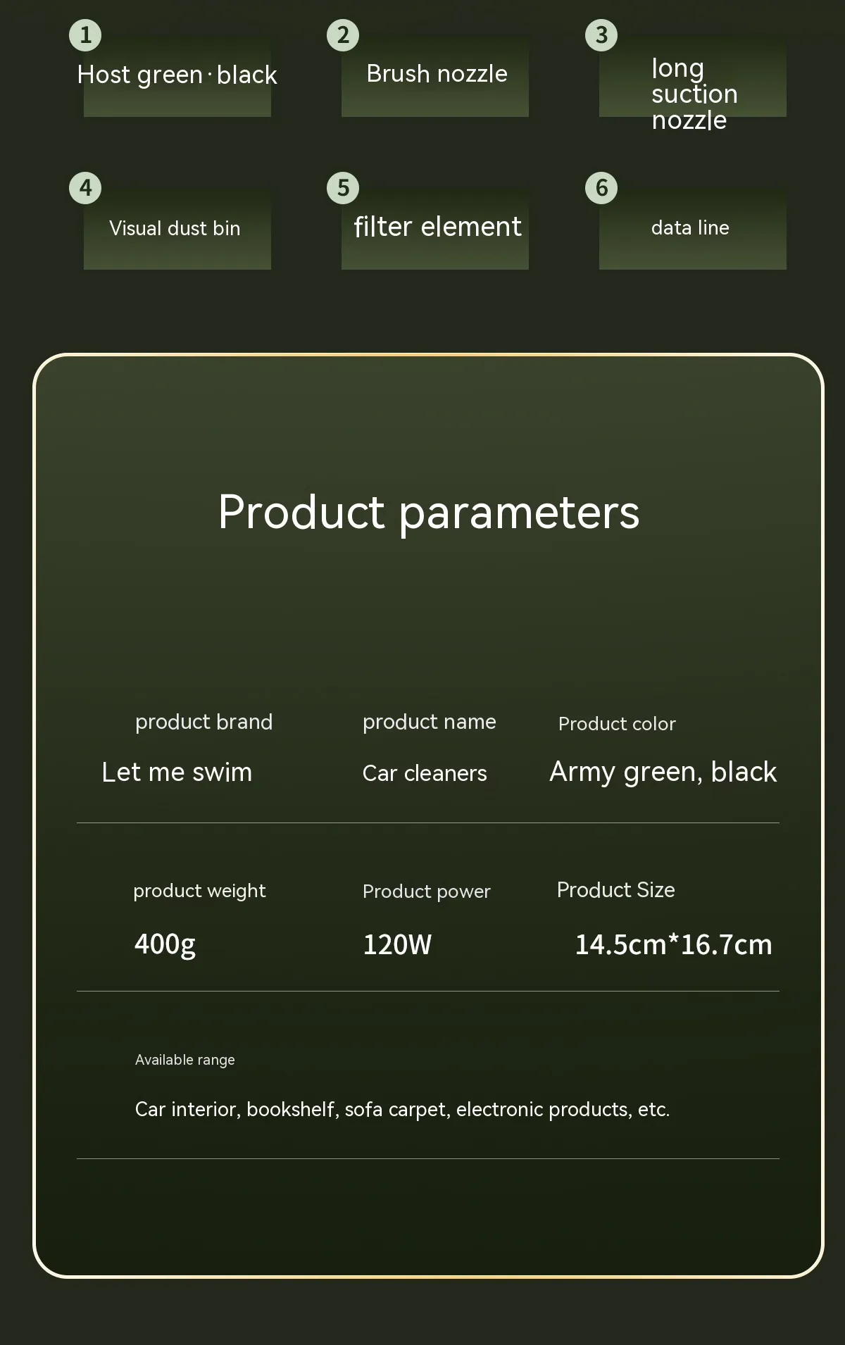 This vacuum is designed for versatile use across different environments. It can be used in cars, living rooms, kitchens, bedrooms, offices, and more. From crumbs and dust to pet hair and small debris, it helps users clean a wide variety of surfaces and spaces quickly and efficiently.