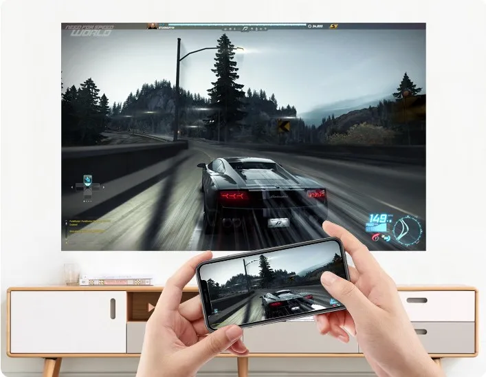 Designed for on-the-go entertainment, this projector boasts a sleek and lightweight form factor, making it easy to carry and set up anywhere.