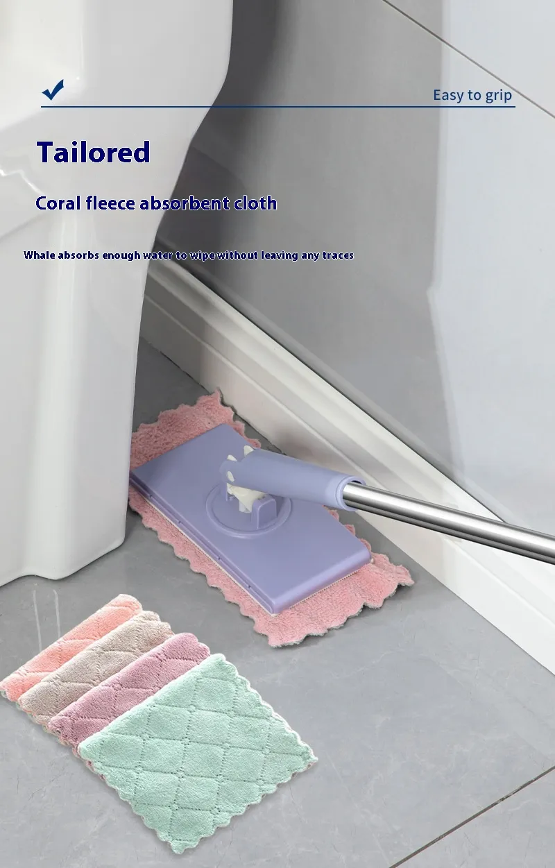 - Automatic Cloth Change : This small mop is equipped with an automatic cloth change function. You just need to press the switch on the head of the small bathroom mop and you can easily replace the dirty cloth with a clean one without getting your hands dirty.
