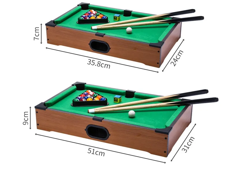The Mini Table Pool is a smaller-scale pool table that offers the same enjoyable gameplay as a traditional table, but in a more compact and affordable design. Typically featuring the same elements of a full-size pool table, including pockets, cues, balls, and a felt-covered surface, it’s a perfect game for those who want to enjoy billiards but don’t have the space or budget for a large pool table.