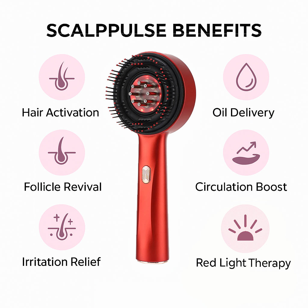 Unlike ordinary scalp brushes, ScalpPulse uses scientifically backed red light wavelengths to enhance blood flow and support healthy hair growth at the cellular level.