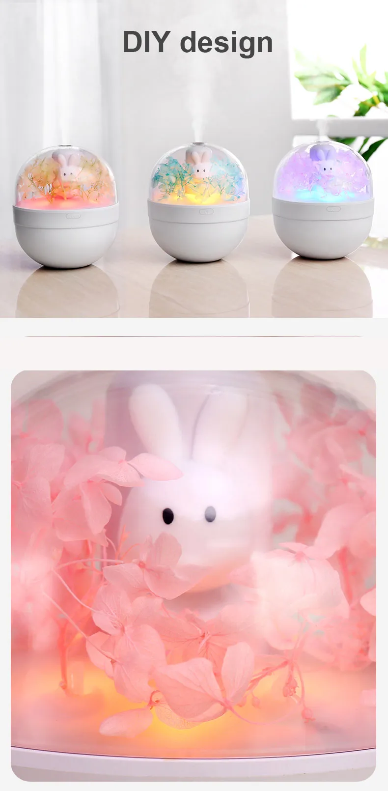 Crea un ambiente fresco y encantador con el minihumidificador Sweetheart Rabbit DIY con flores preservadas