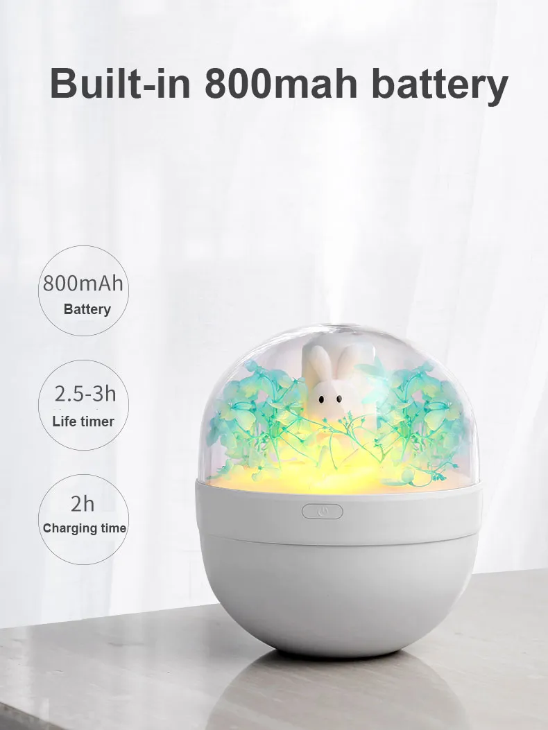 Diseño encantador de conejo: El Mini humidificador Sweetheart Rabbit presenta un diseño de conejo lindo y caprichoso, lo que lo convierte en un regalo perfecto para niños, amantes de los animales o cualquier persona que disfrute de la decoración encantadora. Su delicado diseño le da personalidad a tu escritorio, mesita de noche o sala de estar, integrándose a la perfección con una variedad de estilos de decoración.