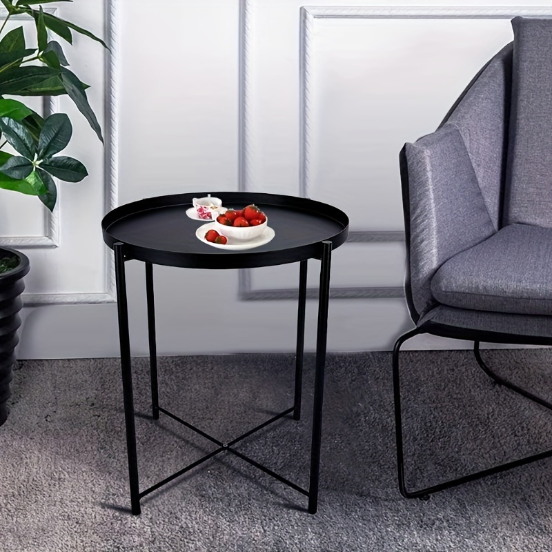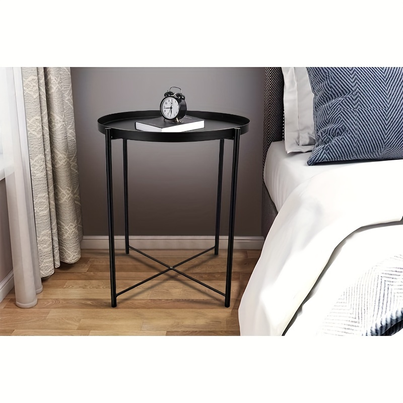 Minimalist Metal Round Tray Side Table – Carbon Steel Frame, Removable Top, Easy to Clean