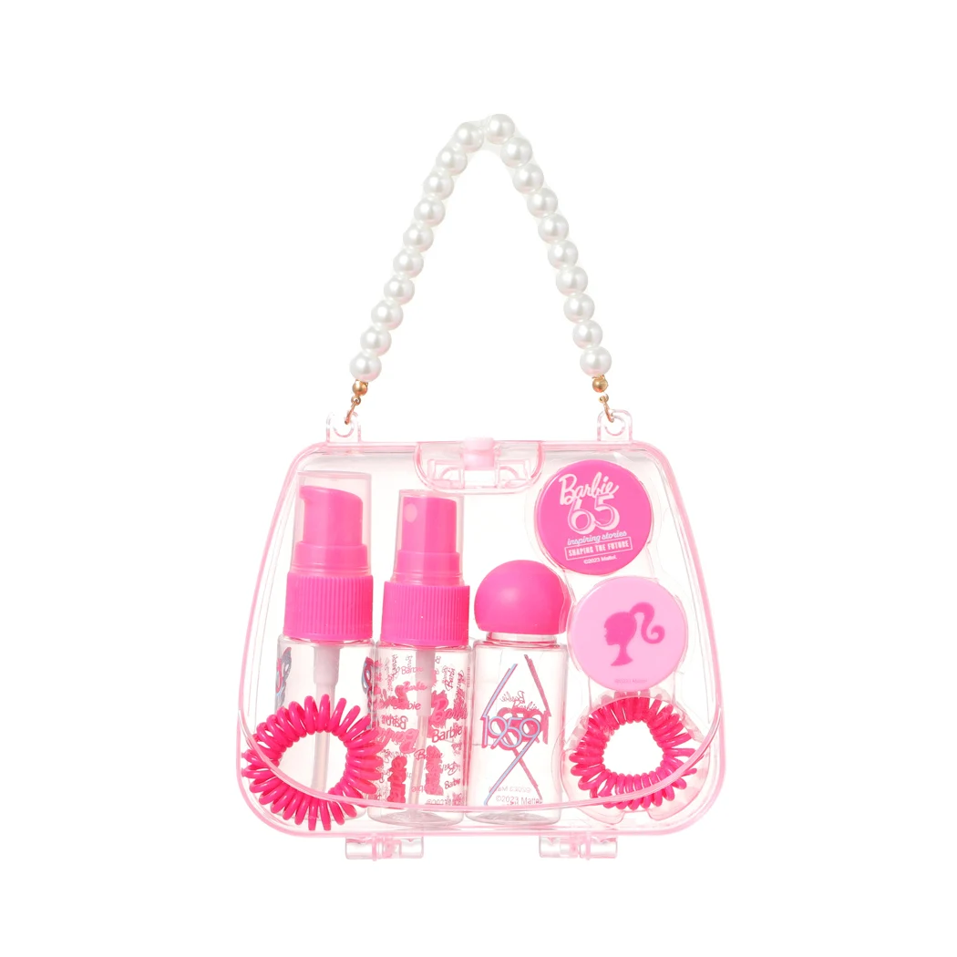 Miniso Barbie Dispensing Bottle Set – Sweetheart Handbag Travel Set, 7-Piece Dispensing Bottle Storage Bag