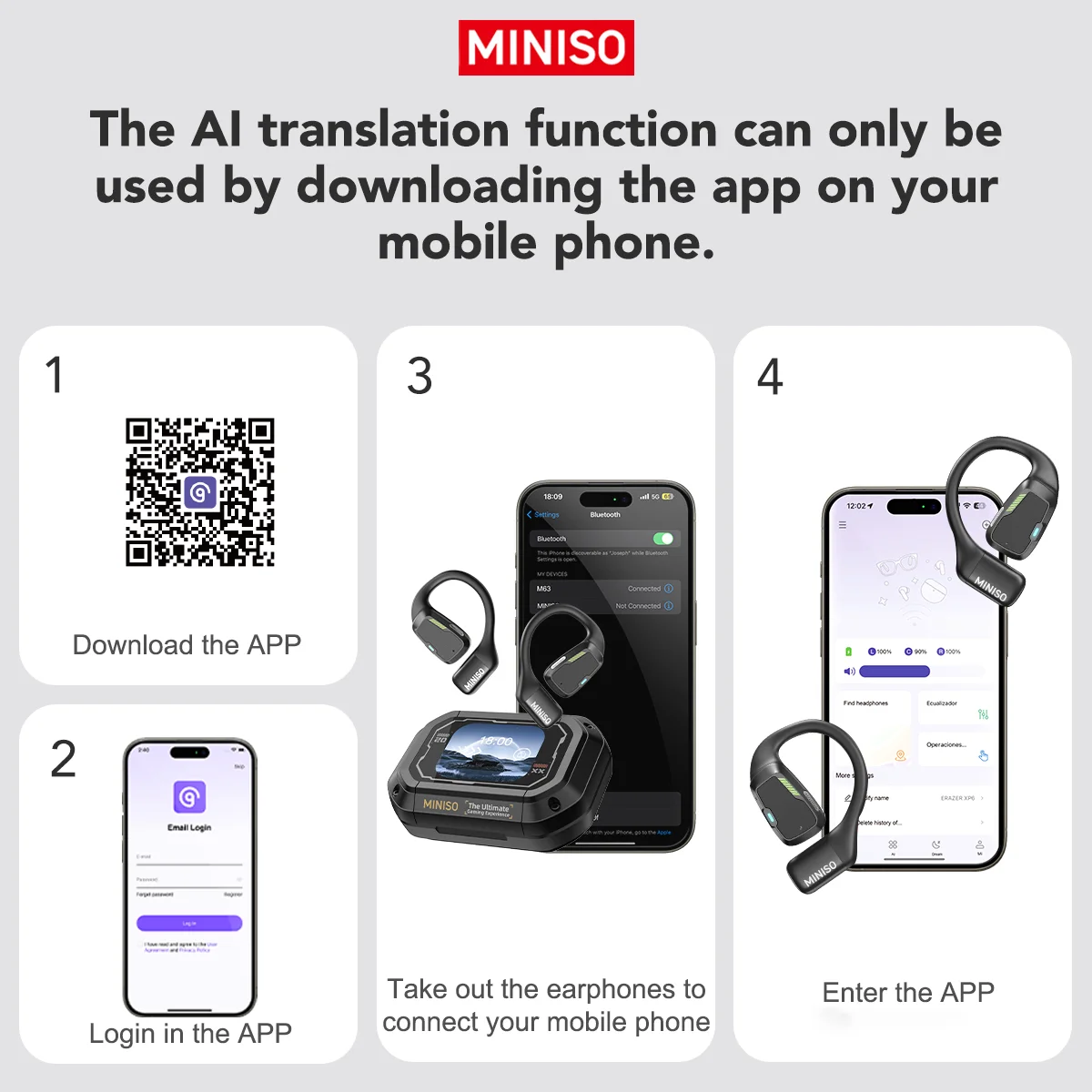 MINISO M98 Wireless Headphones – Bluetooth Earphones with Gaming Headset, ASMR APP Translation, and IPX5 Water Resistance