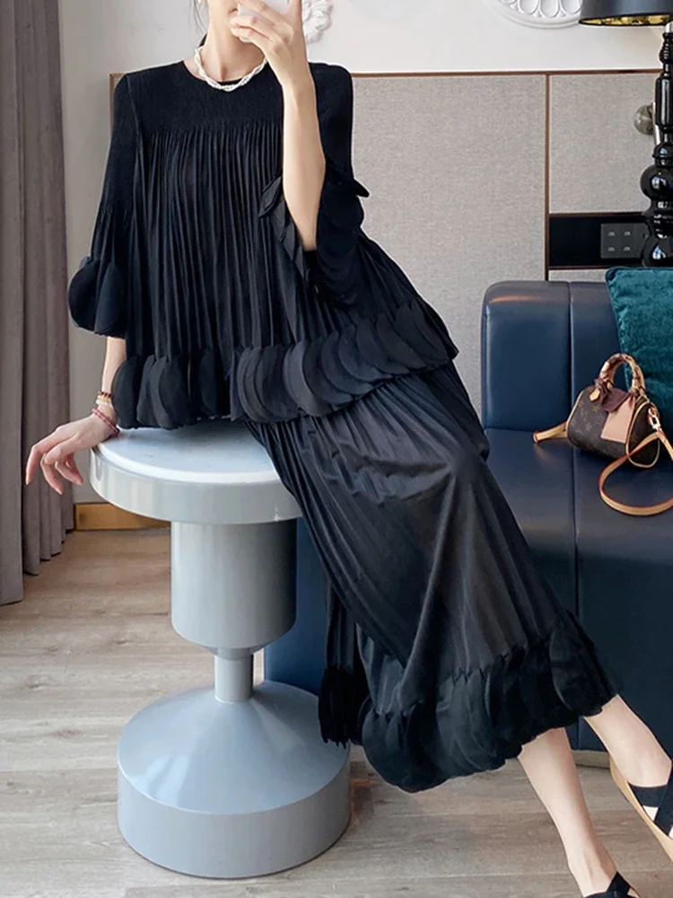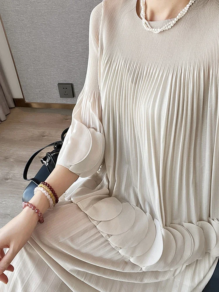 Miyake Pleated Long Sleeved Patchwork Shirt 2024 Fashion Designer Women's Half Skirt Two-piece Set Minimalist Women's Clothing