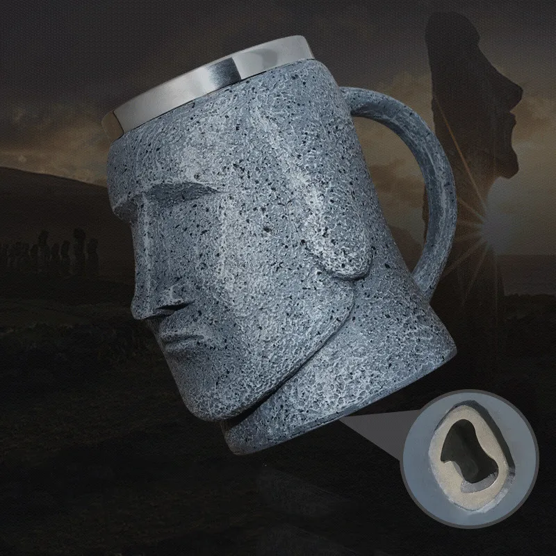 Moai Beer Glass Bottle Opener Stone Portrait