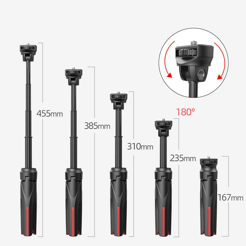 The adjustable height and multi-angle functionality make this device versatile for various photography and video recording needs.