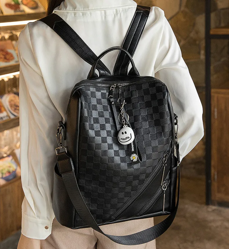 Presentamos nuestra mochila Fashion Checkerboard, la combinación definitiva de estilo y utilidad para la mujer moderna. Este bolso versátil es perfecto para salidas informales, compras y aventuras de viaje, lo que lo convierte en un complemento imprescindible para tu colección de accesorios.