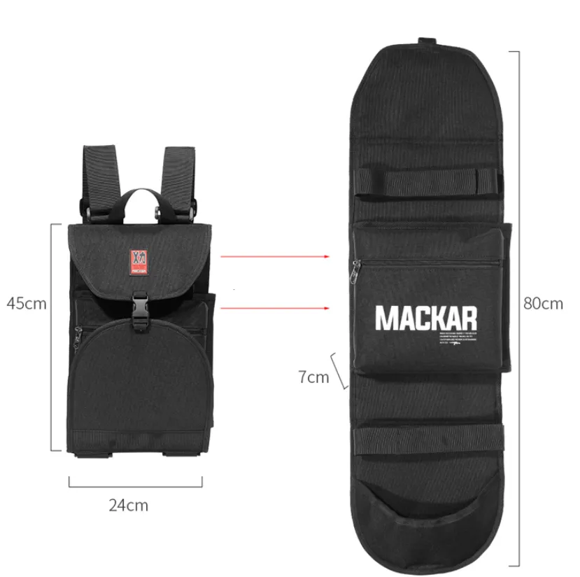 Diseñada para patinadores que necesitan una forma práctica y elegante de llevar su tabla y sus pertenencias.